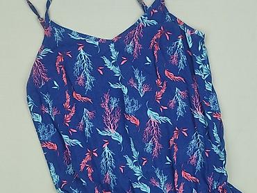Kombinezon damski Yessica (C&A) – letni, w kwiaty - Fason: jednoczęściowy kombinezon z krótkimi nogawkami - Wzór: intensywnie niebieskie tło, wielobarwny kwiatowy print - Dekolt: subtelny, z falba...