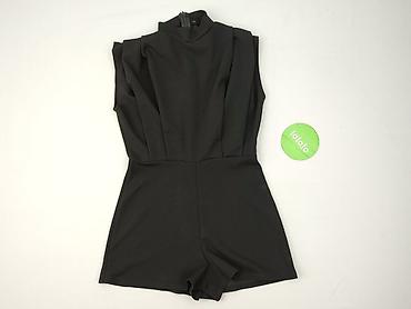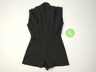 Czarny kombinezon damski Even&Odd, rozmiar S. - Fason: krótki kombinezon (shorts), z dopasowaną górą i lekko rozszerzanymi nogawkami. - Dekolt: halter z wycięciem w kształcie V z przodu; zapinany ...