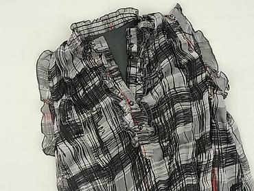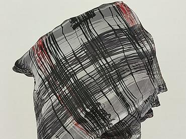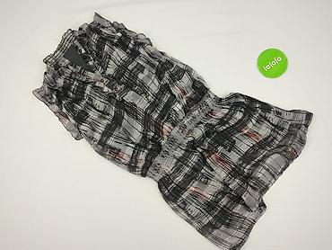 Bluzka damska bez rękawów z lekkiego, półprzezroczystego szyfonu. Wzór w abstrakcyjne, nieregularne pasy/kratkę w odcieniach czerni i szarości z delikatnymi akcentami czerwieni.