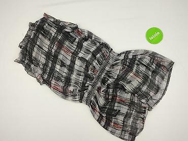 Bluzka damska bez rękawów w kolorze szaro-srebrnym z delikatnym połyskiem. - Fason: dopasowany, z marszczeniami po bokach na wysokości talii, które podkreślają sylwetkę i nadają efekt „peplum”. Za...Stan: