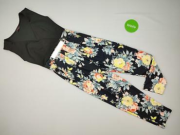 - Kolorystyka: gładka czarna góra + spodnie w kwiatowy wzór (granat/czerń z pastelowymi akcentami żółci, koralu i błękitu)