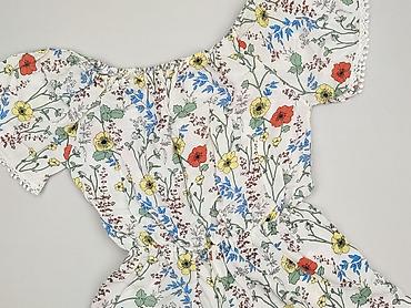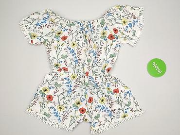 Kombinezon damski my♡se, rozmiar M - Góra: biała w kolorowy, artystyczny print w motywy roślinne (róż, zieleń, żółć, czerń). Dekolt kopertowy, bez rękawów, lekko bufiasty fason przy talii. - Dół: ...