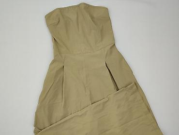 Damski kombinezon bez ramiączek, kolor beżowy/piaskowy. Szerokie, proste nogawki typu palazzo. Góra dopasowana – z przodu modelujące przeszycia, z tyłu elastyczny panel (smocking) zapewniający lepsze dopasowanie i wygodę. Wysoki stan optycznie wydłuża sylwetkę. Materiał lekko elastyczny i gładki: 95% poliester, 5% spandex (zalecane pranie oddzielnie, profesjonalnie). Idealny na lato, wyjścia i codzienne stylizacje; świetnie wygląda z sandałami, klapkami lub obcasami. Neutralny odcień łatwy do łączenia z dodatkami. Dla kobiet. Używany.