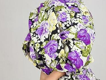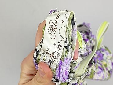 - Wzór: gęsty kwiatowy motyw w odcieniach fioletu, liliowego, kremu i zieleni na ciemnym tle