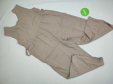 Kombinezon damski, bez rękawów, w kolorze beżowym/jasnopiaskowym. - Fason: kopertowy dekolt V, góra z delikatnymi zakładkami; w pasie elastyczna guma podkreślająca talię. - Nogawki długie, zwężan...Stan: