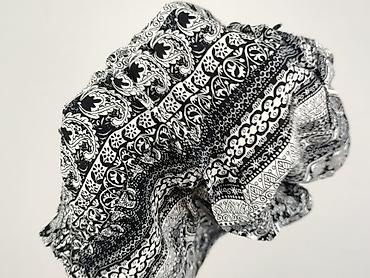 - Wzór: czarno‑biały, orientalne/boho pasy i paisley