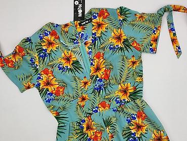 Kombinezon damski JANINA, rozmiar S - Krój: jednoczęściowy, z krótkimi nogawkami; w pasie elastyczna gumka podkreślająca talię. - Wzór: tropikalny print – liście palm i kwiaty w żywych kolorach (ż...
