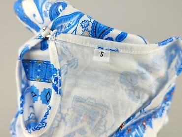 Kombinezon damski, rozmiar S, z lekkiej tkaniny w biało‑niebieski wzór paisley i kwiatowe bordiury.