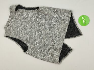 Sweter/ponczo damskie z dzianiny, grafitowe - Fason: bezrękawnik/ponczo z krótkim rękawkiem, zapinane na trzy guziki z przodu - Splot: bogaty, warkoczowy, przeplatany ażurowymi fragmentami; dekora...