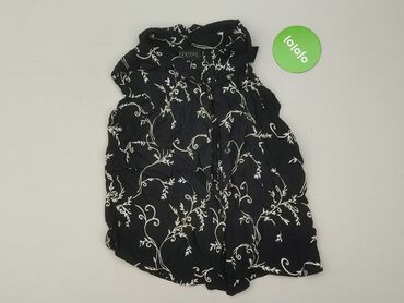 Damska kamizelka garniturowa, czarna - Krój: klasyczna kamizelka bez rękawów, zapinana na 4 guziki z przodu - Kołnierz: szeroki, szalowy - Tył: pasek regulacyjny z klamrą do dopasowania w talii - ...