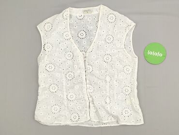 Damska kamizelka Sinsay - Rozmiar: M - Kolor: biały - Fason: bezrękawnik z głębokim dekoltem V, zapinany na cztery ozdobne guziki z przodu; lekko wydłużony, szpiczasty dół z przodu i z tyłu - Tkan...