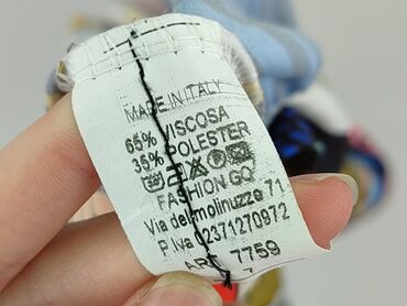 Top damski bez rękawów, made in Italy. - Fason: luźny, z marszczonym dołem i stójką/przesuniętym kołnierzykiem przy szyi; lekko balonowy krój. - Zapięcie: z tyłu na guziczek przy szyi. - Tkanina: w...