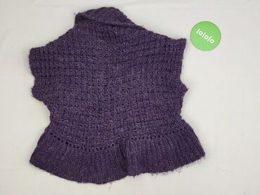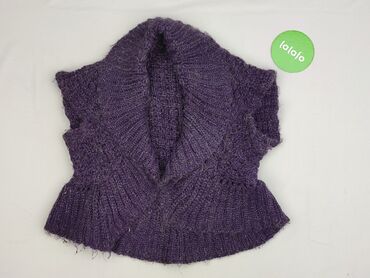 Fioletowy kardigan damski wykonany w 100% z akrylu. Charakteryzuje się unikalnymi, ozdobnymi aplikacjami na ramionach, które dodają mu elegancji. Długie rękawy i luźny krój zapewniają komfort nosze...Stan: