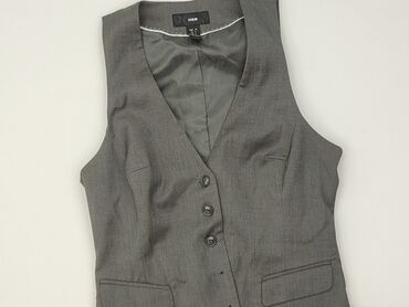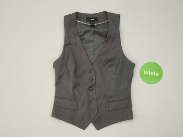 Kamizelka damska H&M - Kolor: czarny w delikatną, wąską prążkowaną kreskę - Rozmiar z metki: EUR 36 (US 6, FR 38, CN 165/84A) - Fason: klasyczny, jednorzędowy; dekolt w kształcie litery V - Zapięc...