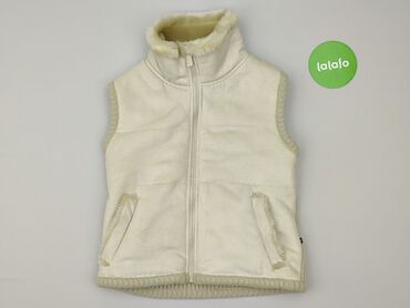 Kamizelka damska H&M, rozmiar XS. - Kolor: beżowy - Materiał: dzianina 100% akryl; wstawki z imitacji futra (41% akryl, 38% modakryl, 21% poliester) - Krój: bez rękawów, prosty, z ozdobnymi pasami...