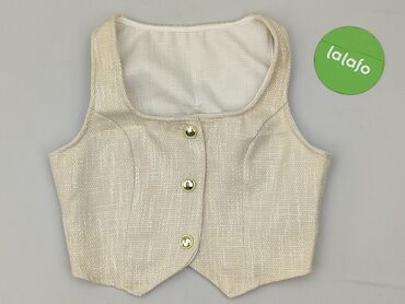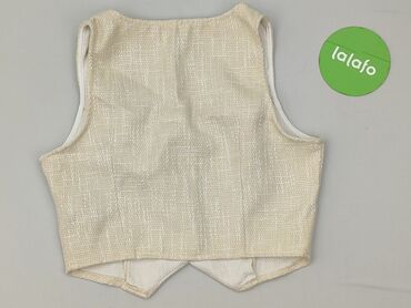 Beżowy bezrękawnik damski SHEIN - Rozmiar: M (EU 38, US 6 – na metce) - Fason: krótki, swetrowy top bez rękawów - Dekolt: w serek (V-neck) - Splot: warkoczowy, pionowe pasy - Ściągacze przy dekolc...