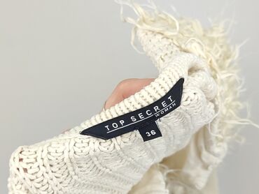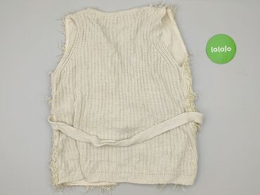 Beżowy/ekri ażurowy bezrękawnik damski - Krój: sweterkowa kamizelka bez zapięcia, długość do bioder - Materiał: dzianina prążkowana (miękka, elastyczna), wykończenie ściągaczem u dołu i przy pacha...