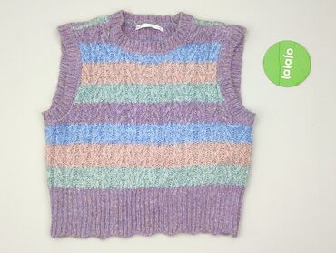 Fioletowo‑różowy, dzianinowy bezrękawnik damski. - Krój: krótki, prosty, bez zapięcia (otwarty przód), dekolt w kształcie litery V - Materiał: miękka dzianina o gęstym splocie (przyjemna w dotyku,...