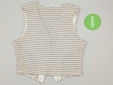 - Wzór i kolor: beżowo‑białe, poziome paski; fakturowana, ażurowa dzianina