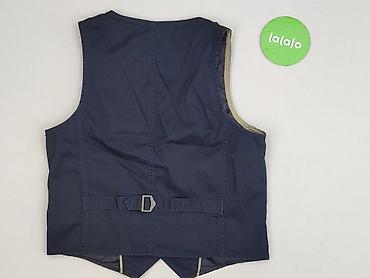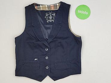 Granatowa kamizelka damska - Krój: klasyczny, dopasowany, z głębokim dekoltem V - Zapięcie: pięć granatowych guzików z przodu - Tył: wydłużony w szpic - Kolor: głęboki granat; wnętrze w kolorze cz...Stan: