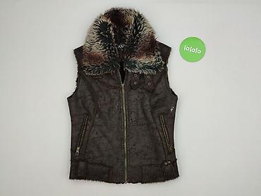 Beżowa kamizelka damska S&W, rozmiar M - Fason: ocieplana kamizelka bez rękawów z szerokim, miękkim kołnierzem/kapą wykończoną obfitą sztuczną futrzaną lamówką - Zapięcie/pas: wiązanie w talii pas...