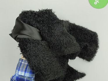 Damska kamizelka garniturowa, czarna - Krój: klasyczna kamizelka bez rękawów, zapinana na 4 guziki z przodu - Kołnierz: szeroki, szalowy - Tył: pasek regulacyjny z klamrą do dopasowania w talii - ...