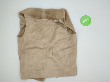 Beżowa kamizelka damska bez zapięcia - Krój: swobodny, lekko rozkloszowany dół z marszczeniem - Fason: bez rękawów, otwarty przód (brak guzików/suwaka) - Kolor: jasny beż/szaro-beżowy - Materiał: ...Stan: