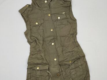 Kamizelka damska Sinsay - Rozmiar: XS (z metki) - Kolor: khaki/oliwkowy - Krój: bezrękawnik koszulowy - Zapięcie: na napy/napy metalowe z przodu - Kieszenie: dwie naszywane kieszenie na piersiach ...