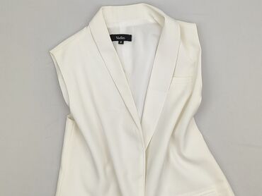Damska kamizelka Sinsay - Rozmiar: M - Kolor: biały - Fason: bezrękawnik z głębokim dekoltem V, zapinany na cztery ozdobne guziki z przodu; lekko wydłużony, szpiczasty dół z przodu i z tyłu - Tkan...Stan: