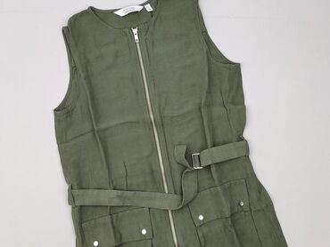Beżowa kamizelka damska Sinsay - Marka: Sinsay - Rozmiar z metki: M - Fason: dłuższa kamizelka bez rękawów - Kołnierz z klapami, przód na zakładkę - Pasek do przewiązania w talii (szlufki) - Rozci...