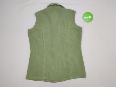 Lekka kamizelka damska bez rękawów - Kolor: pastelowa szałwiowa zieleń - Krój: prosty, lekko pudełkowy; dekolt okrągły - Zapięcie: drewnopodobne guziki na przodzie (4 szt.) - Materiał: 100% polies...Stan: