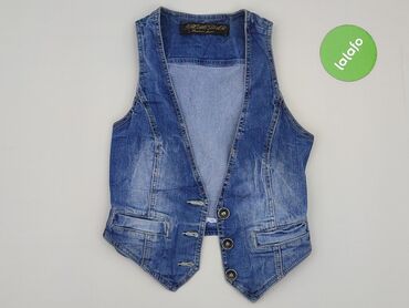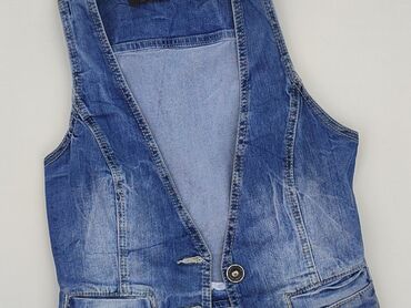 Jeansowa kamizelka damska - Materiał: 98% bawełna, 2% elastan (elastyczny denim, wygodny w noszeniu) - Krój: dopasowany, taliowany - Zapięcie: z przodu na dwa guziki - Kolor: klasyczny niebieski j...Stan: