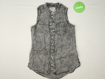 Jeansowa kamizelka Denim Co - Materiał: klasyczny denim (bawełna), średni odcień granatowego jeansu z przetarciami w stylu vintage. - Krój: bezrękawnik z kołnierzem, zapinany z przodu na metalowe ...