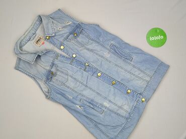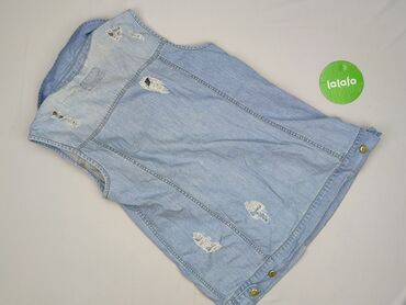 Jeansowa kamizelka bez rękawów - Materiał: klasyczny denim (bawełna jeansowa), średnia grubość, lekko sprany niebieski odcień - Krój: koszulowy, zapinana na guziki na całej długości - Kołnierzyk: ...