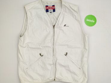 Męska kamizelka w kolorze beżowym, wykonana z bawełny. Kamizelka jest zapinana na guziki i zamek błyskawiczny, co zapewnia wygodę użytkowania. Posiada kilka praktycznych kieszeni: dwie duże z klapk...Stan:
