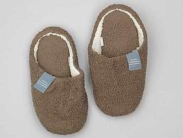 Damskie kapcie/domowe pantofle w kolorze miodowo‑brązowym. - Rozmiar: 38–39 (oznaczenie wewnątrz buta) - Cholewka: miękka tkanina imitująca zamsz - Podszycie: ciepła, filcowa/miękka wyściółka wewn...Stan: