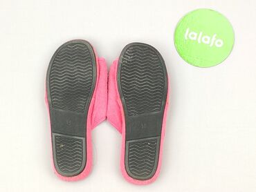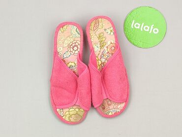 Różowe kapcie damskie z odkrytymi palcami - Typ: kapcie/domowe klapki dla kobiet - Rozmiar: 36 (oznaczenie na podeszwie) - Kolor: intensywny róż - Cholewka: miękka, frottowa tkanina - Zapięcie/reg...Stan: