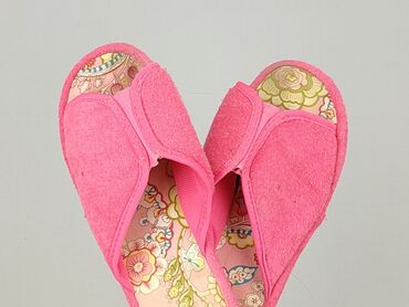 Różowe kapcie damskie z odkrytymi palcami - Typ: kapcie/domowe klapki dla kobiet - Rozmiar: 36 (oznaczenie na podeszwie) - Kolor: intensywny róż - Cholewka: miękka, frottowa tkanina - Zapięcie/reg...