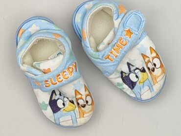 Dziecięce kapcie/trampki SLIPPERSFAMILY – Made in Poland - Rozmiar: 23 (wkładka z oznaczeniem 23/24) - Kolor: niebieski - Wzór: komiksowe motywy (napisy „WOW!”, „POP!”, gwiazdki, błyskawice) - Mat...Stan: