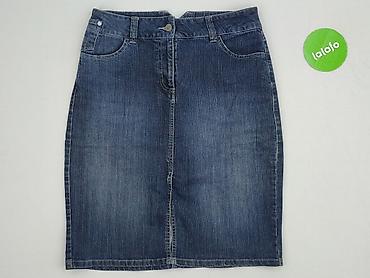 Spódnica jeansowa damska Pepco, rozmiar M - Klasyczny niebieski denim z delikatnymi przetarciami na przodzie i tyle - Fason ołówkowy, długość do kolan - Pas z szlufkami, zapięcie na guzik i zamek ...