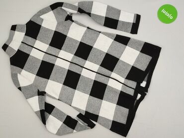 Sweterek/kardigan damski z krótkim rękawem - Krój: kardigan zapinany na guziki z przodu - Wzór: klasyczna kratka argyle (romby) w kolorach czarnym, białym i jasnoniebieskim - Rękawy: krótkie, zako...