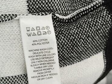 Czarny kardigan w białe, poziome pasy - Krój: rozpinany bez zapięcia (otwarty przód), rękawy 3/4 - Wzór: szerokie biało‑czarne pasy - Dekolt: zaokrąglony - Materiał: 100% akryl (etykieta na zdjęci...