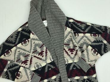 Szara dzianinowa narzutka/kardigan z kapturem - Krój: długi, otwarty (bez zapięcia), lekko lejący; rękawy długie - Kolor: melanż szarości z czarną lamówką przy krawędziach - Materiał: 95% akryl, 5...