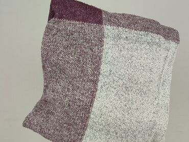 - Kolorystyka: blokowe połączenie odcieni burgundu/śliwki i jasnoszarego, melanżowa przędza