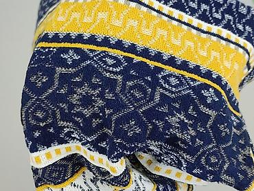- Wzór: etniczne/geometryczne pasy; kolorystyka granatowa z żółtymi i białymi akcentami