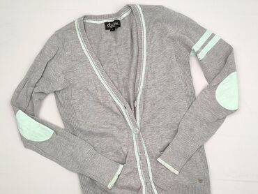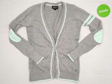 Kardigan damski Collection L - Model: rozpinany na guziki - Kolorystyka: odcienie szarości z białymi pasami (paski poziome) - Dekolt: w serek (V-neck) - Rękaw: długi - Materiał: 100% bawełna – mię...Stan: