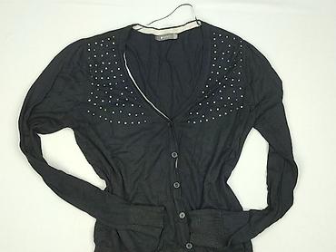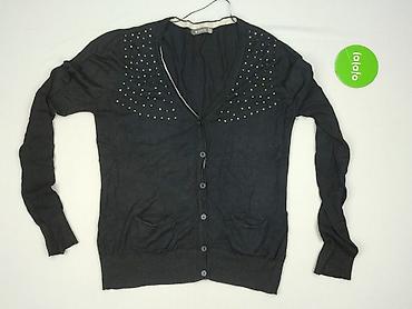 Uniwersalny kardigan do codziennych i wieczorowych zestawów, dodający subtelnego blasku dzięki aplikacjom z przodu. Marka: DeFacto. Dla kobiet. Rozmiar L. Kolor czarny. Styl casual/elegant.