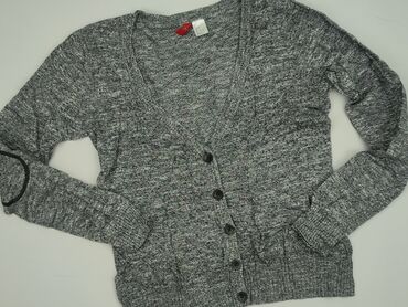 H&M Divided – damski kardigan - Kolor: melanż szarości - Krój: klasyczny kardigan zapinany na 5 guzików, dekolt w serek - Detale: kontrastowe łaty na łokciach w ciemnym kolorze, prążkowane ściągac...
