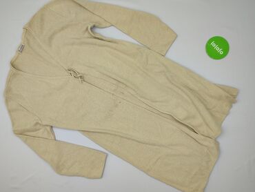 Przedmiotem ogłoszenia jest beżowy kardigan damski z krótkim rękawem, wykonany w 100% z bawełny. Posiada dekolt w kształcie litery V oraz zapięcie na guziki. Kardigan w rozmiarze europejskim 42, wy...