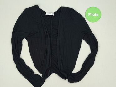 Czarny kardigan damski Flame, rozmiar S. - Fason: lekki, drapowany przód z nakładającymi się poły, bez zapięcia - Rękaw: długi - Długość: zakrywająca biodra - Materiał: cienka, elastyczna dzianina...Stan: